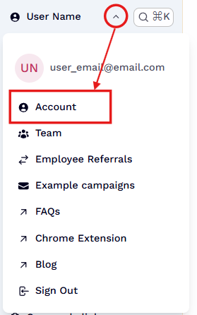 Step 1. Go to your User Profile Settings by clicking the drop down next to your User Profile on the top-left corner of the page and select "Account".
