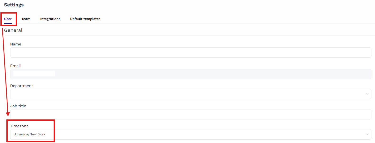 Step 2. Under the User tab, select the "Timezone" drop-down menu and choose your timezone.