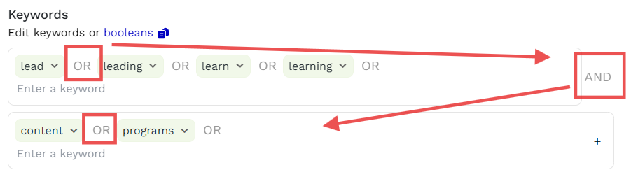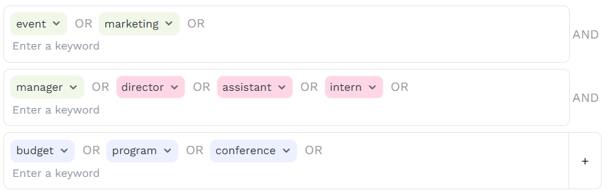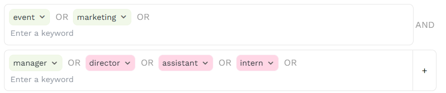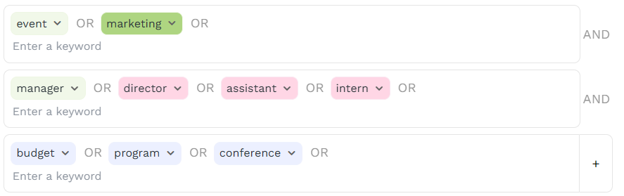 💡 Start with blue filters → see what the AI surfaces → tighten with green as needed.