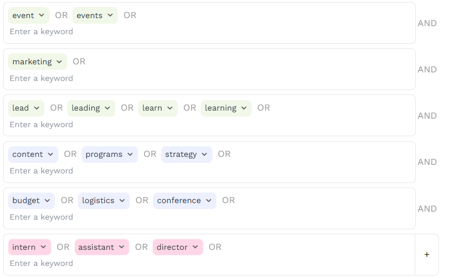 - Experience: Combine key experience terms
